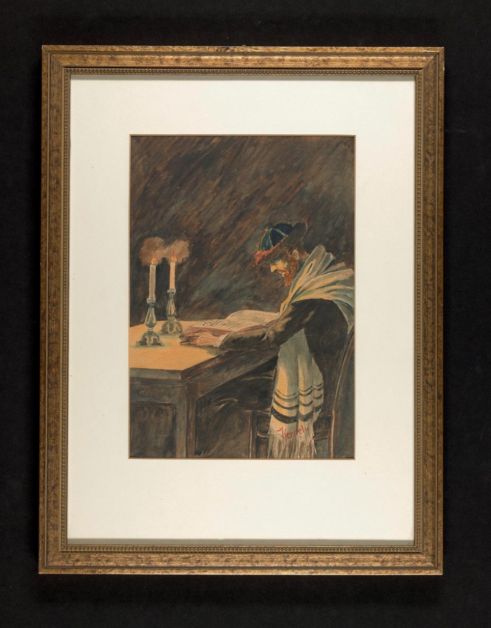 Gerahmtes Gemälde (Aquarell) : Porträt eines lesenden Mannes in religiöser Kleidung
